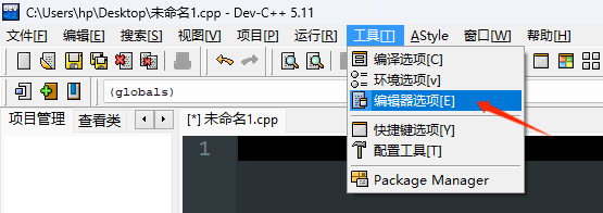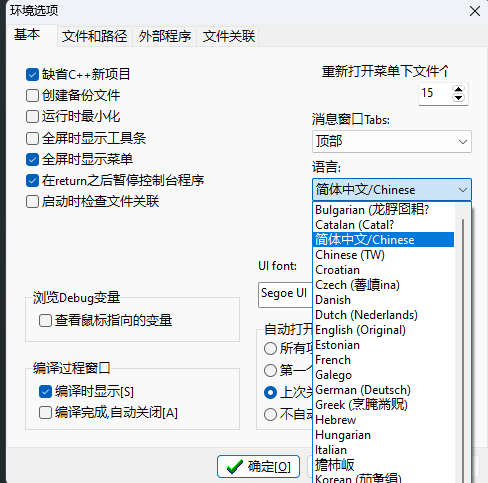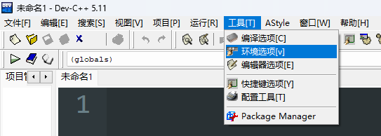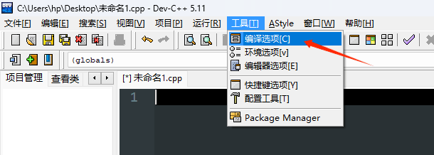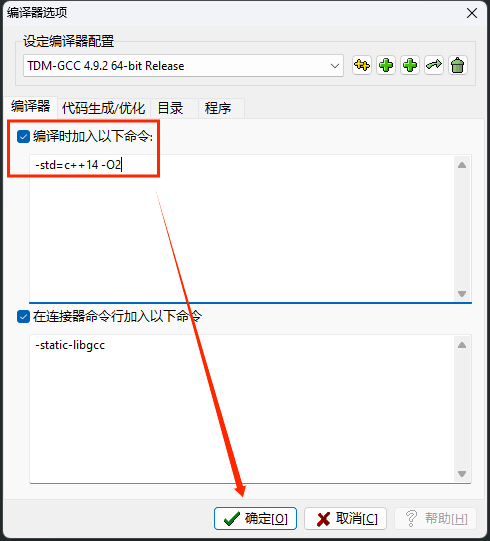 点击“工具”、“编译选项”,选中“编译时加入以下命令”,写入