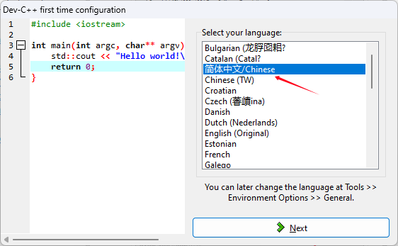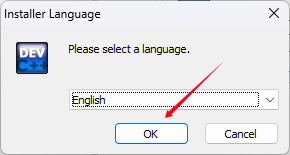 打开安装包:此处先选择英文,后面可以修改为简体中文