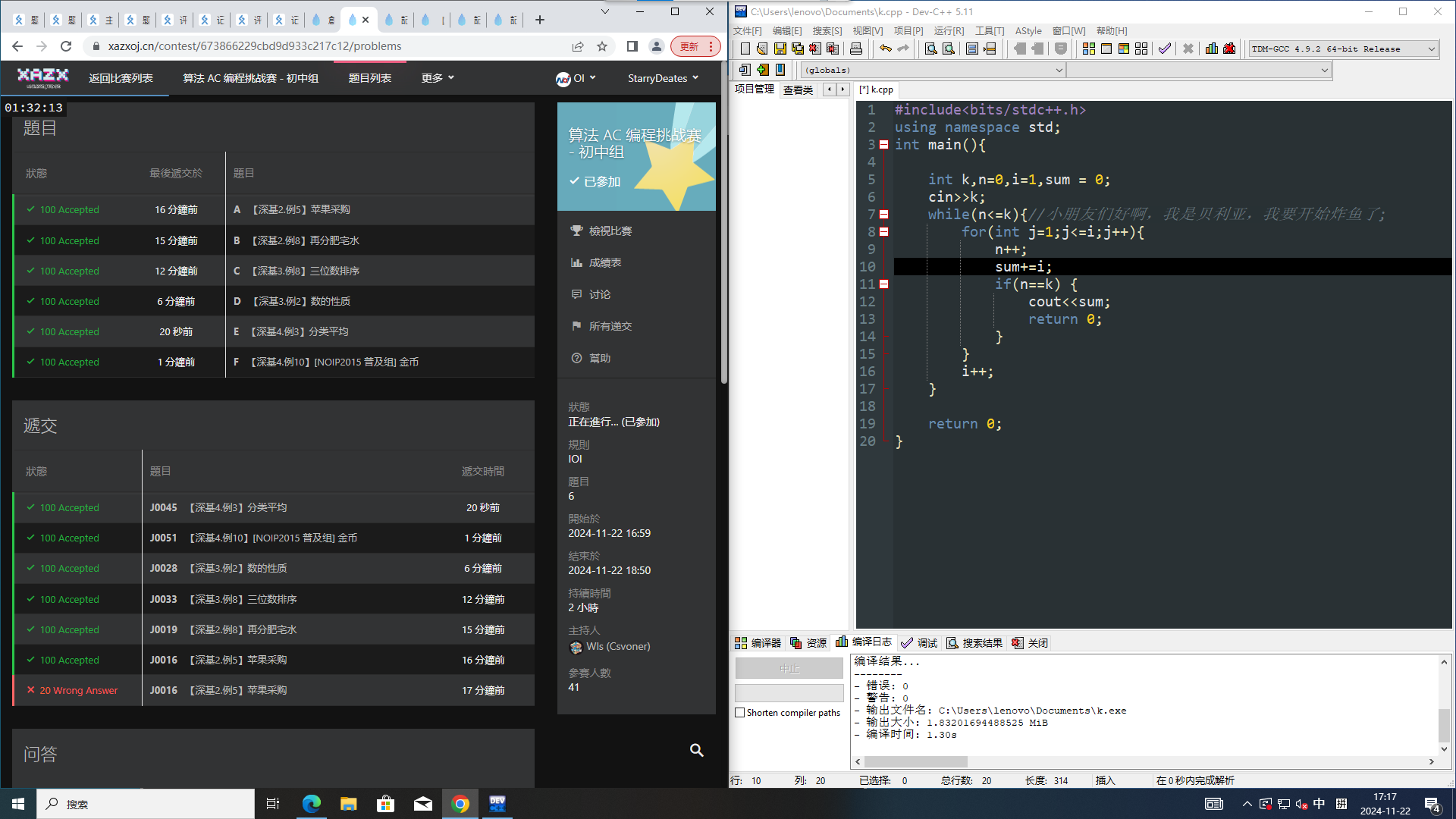 算法 AC 编程挑战赛 - 初中组