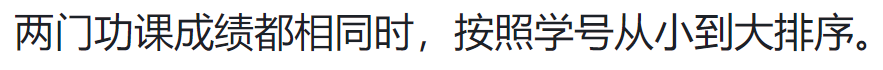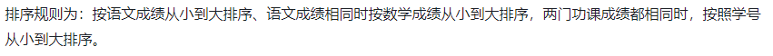 排序规则为:按语文成绩从小到大排序、语文成绩相同时按数学成绩从小到大排序,两门功课成绩都相同时,按照学号从小到大排序。